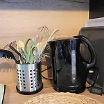 Outre une cafetière/théière, les équipements indépendants de la kitchenette comprennent un micro-ondes et un réfrigérateur. L'aéroport Konrad-Adenauer de Cologne/Bonn est à une distance de 33 minutes en voiture, et l'arrêt de bus Zypressenstrasse est à courte distance à pied de l'appartement.